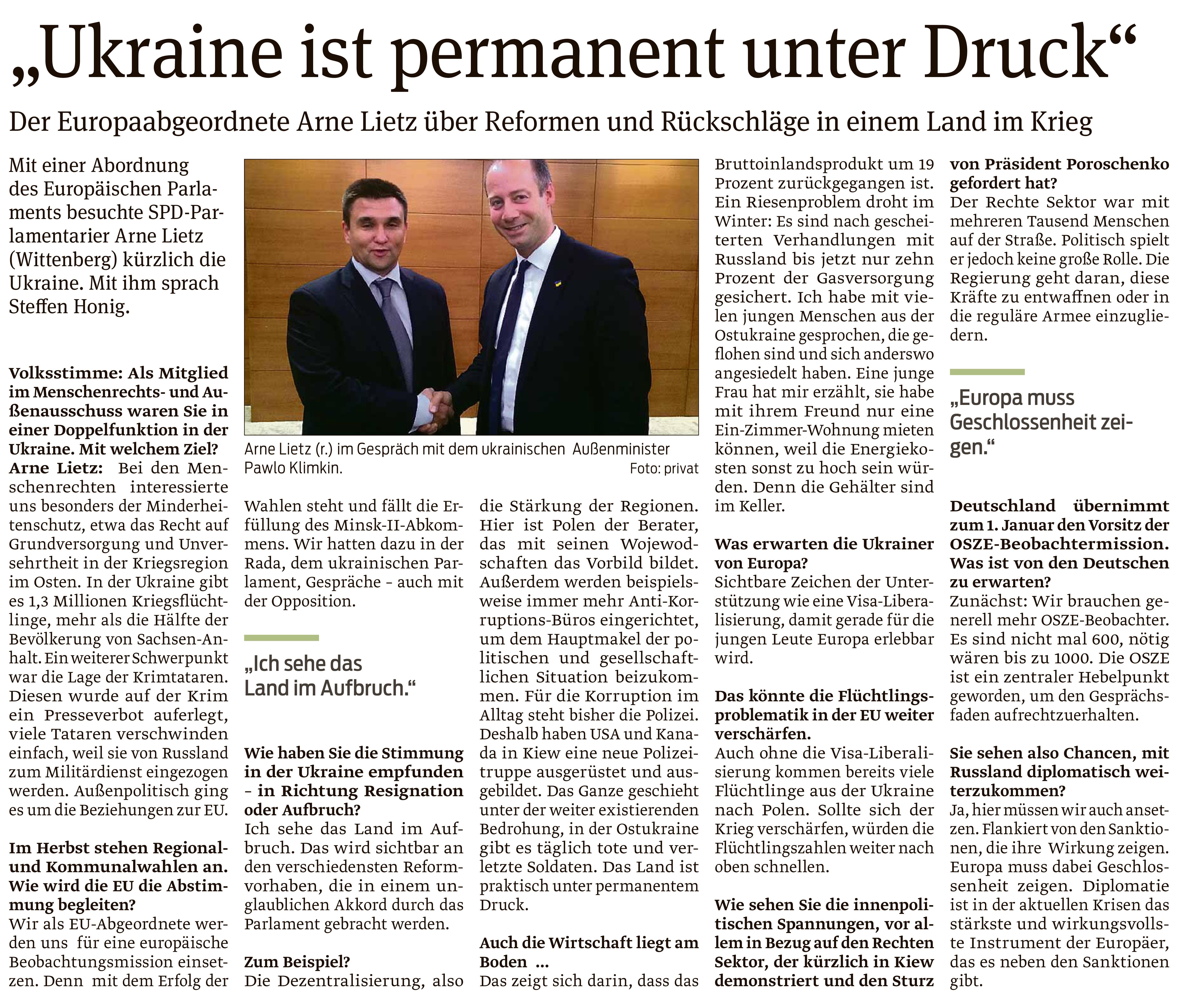 Mit dem Volksstimme Redakteur Steffen Honig sprach der SPD-Europaabgeordnete Arne Lietz zu seiner Delegationsreise in die Ukraine.